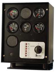 Tableros EL240 Tableros para motores gobernados mecánicamente En versiones de 12V y 24V, cableado opcional Medidores de batería, presión de aceite, temperatura, tacómetro, y horómetro Con luces LEDs de advertencia que recuerdan e indican porqué el tablero apagó el motor Llave IP64 75A 12V Protege el motor apagándolo si un sensor detecta mal funcionamiento Dos entradas auxiliares para sensores externos que pueden hacer que el motor se apague Muy fuerte aluminio con proceso Aluflex y con pintura anticorrosiva Pre-calentamiento, opcional Ficha Técnica: Mas Info
